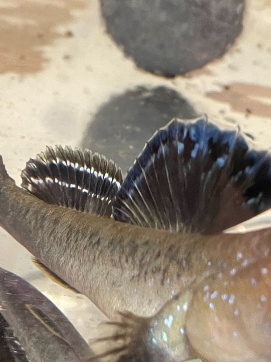 #今日のチラ見せ🫣 こちらの生きもの、背びれを広げるとこんなに大きいんです! 初日からエサをたくさん食べてくれて飼育担当クルーもひと安心です☺️ #カワスイ の新しい仲間のお披露目まであと3日🗓 楽しみにお待ちください✨ #川崎水族館
