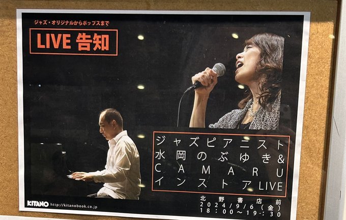 ◆イベントのお知らせ◆本日、あと1時間後……!18:00~19:30まで、#水岡のぶゆきさん#CAMARUさんのインストアライブが帰ってきます♪場所は北野書店前で予定しております!夏を感じながらジャズ..