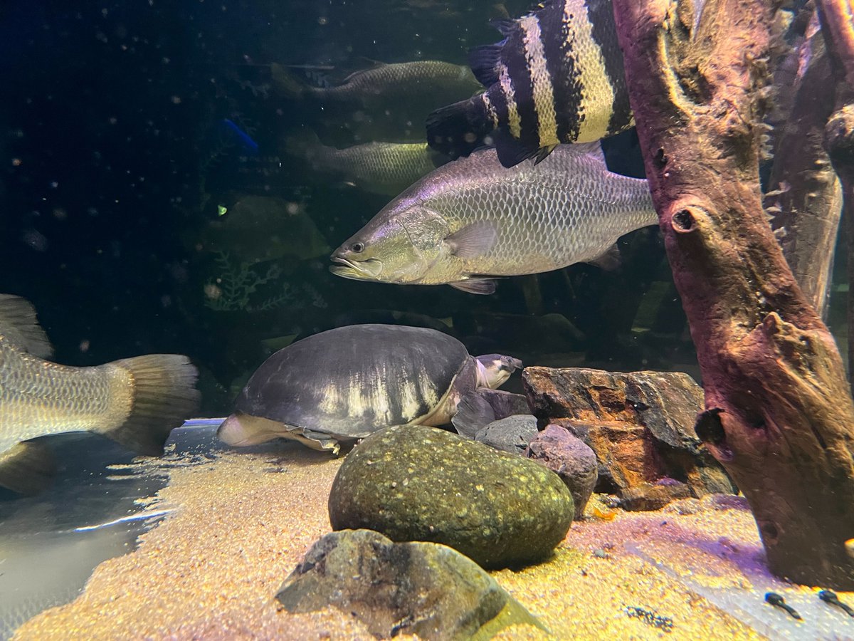 朝の #スッポンモドキ 🐢 開館前はまだ寝てることもあります😪💤 #カワスイ #川崎水族館