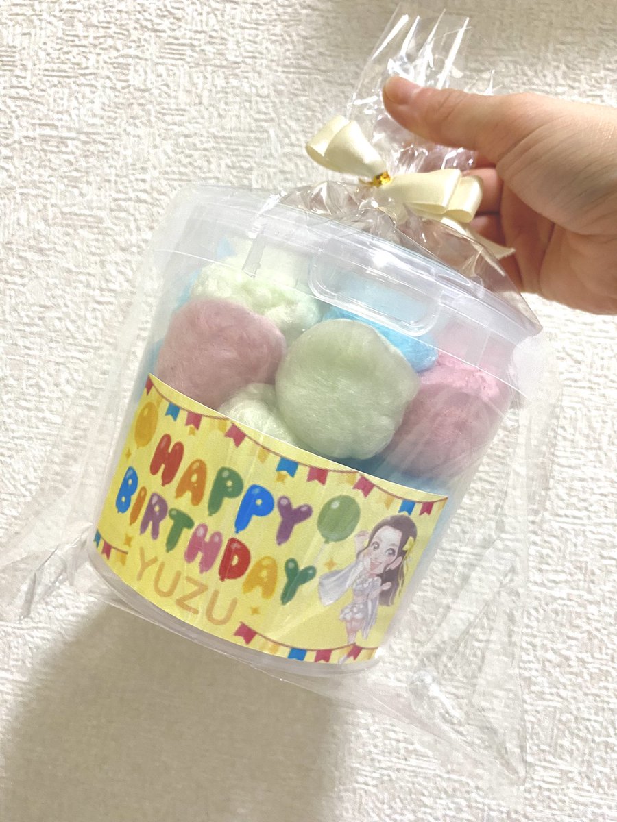 コットンキャンディーのお店、「ChainOfHappiness」さんからお誕生日プレゼントを頂きました色んな種類のフレーバーを入れてわざわざ作ってくれたそうです生誕祭のLIVE会場までわざわざ足を運ん..