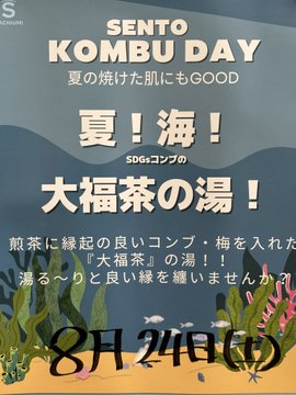 まだまだ毎日暑いですね。週明けは台風も心配ですね。さて本日24日は大福茶の湯です♪煎茶に昆布、梅干しを入れた大福茶!ぜひご来浴下さい。キャッシュレス決済も出来る様になりました♪#大黒湯#銭湯#上中里#..