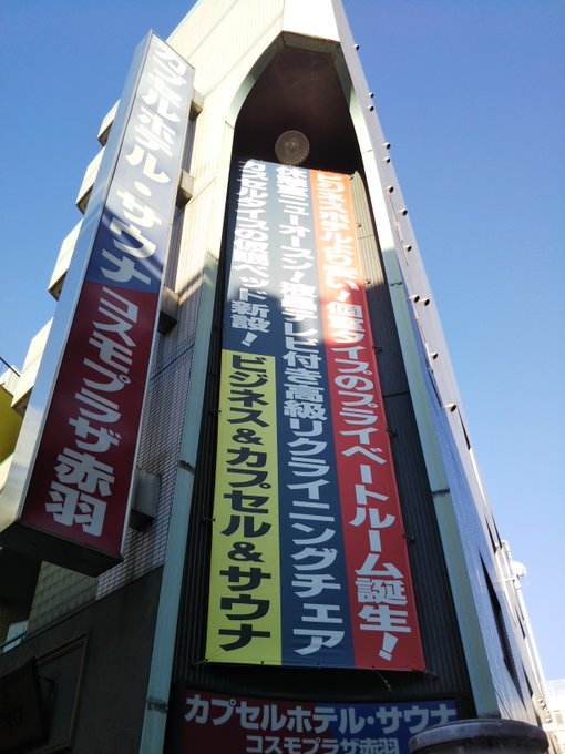赤羽一番街商店街の先 人呼んで「赤い小部屋」「地下の異世界」「カオス」そして「小宇宙(コスモ)」・・・実は、普通のこじんまりしたサウナです。ただ・・・熱々の焼かれるようなサウナとよく冷えた深い水風呂があるだけ そんな コスモプラザ赤羽にお越しください