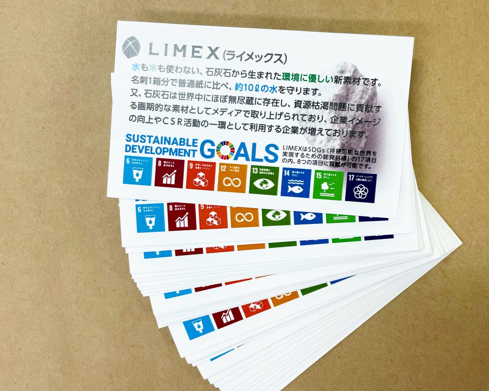 SDGsに貢献できる新素材LIMEXを使った印刷物の一例: