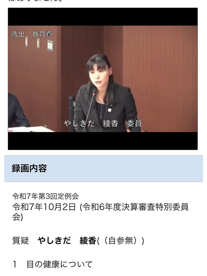 令和7年第3回定例会令和7年10月2日(令和6年度決算審査特別委員会)教育費1目の健康についてhttps://koto-city.gijiroku.com/g08_Video_View_s.asp?k..