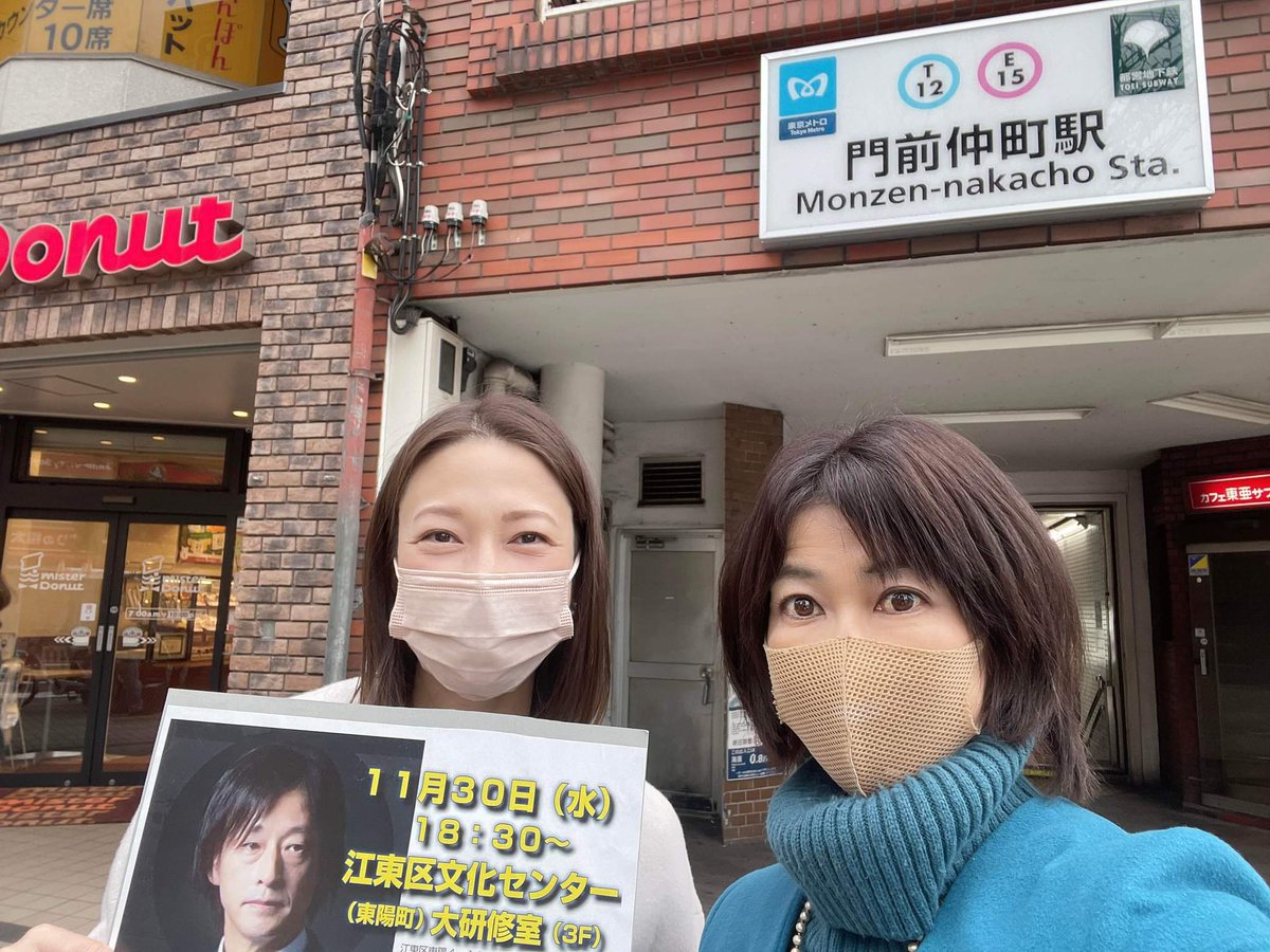 いよいよ明日、江東区で#統一教会問題講演会。#立憲民主党江東パートナーズは、江東区文化センターで講演会を行います。ゲストは鈴木エイト氏宣伝のため、門前仲町/木場駅でチラシをお配りしました。どなたでもご..
