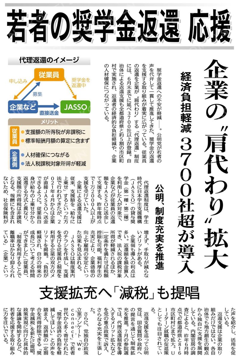 若者の奨学金返還を応援する仕組みは、返す側にとって安心になるだけでなく、企業にとっても人材確保につながる、双方にメリットの大きい取り組みだと思います。若者の奨学金返還を応援/企業の“肩代わり”拡大/経..