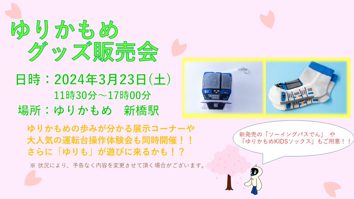 3月23日(土)、ゆりかもめ新橋駅で「ゆりかもめグッズ販売会」を開催します。注目の新商品「ソーイングパスでん」、「ゆりかもめKIDSソックス」をはじめとしたオリジナルグッズの販売や運転台操作体験会など..