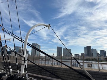 【乗船実習レポート】#海鷹丸 8月7日 学生にとって #実習 最後となる #漂流ゴミ 目視観測、 #航海当直 を「いつも通り」に行い、日没前に #東京港 外に投錨しました 今日は最後の #修了試験 が実施されます