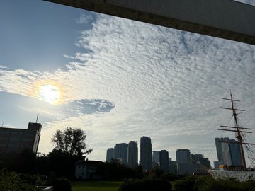 これは朝、ですから。日暮れって感じですね。#明日は開館日なのに、雨予報は変わらず…#品川キャンパスでは、2日から4日にかけて#海鷹祭が開催されます。詳細は下記URLから。そちらにもお立ち寄りください。..