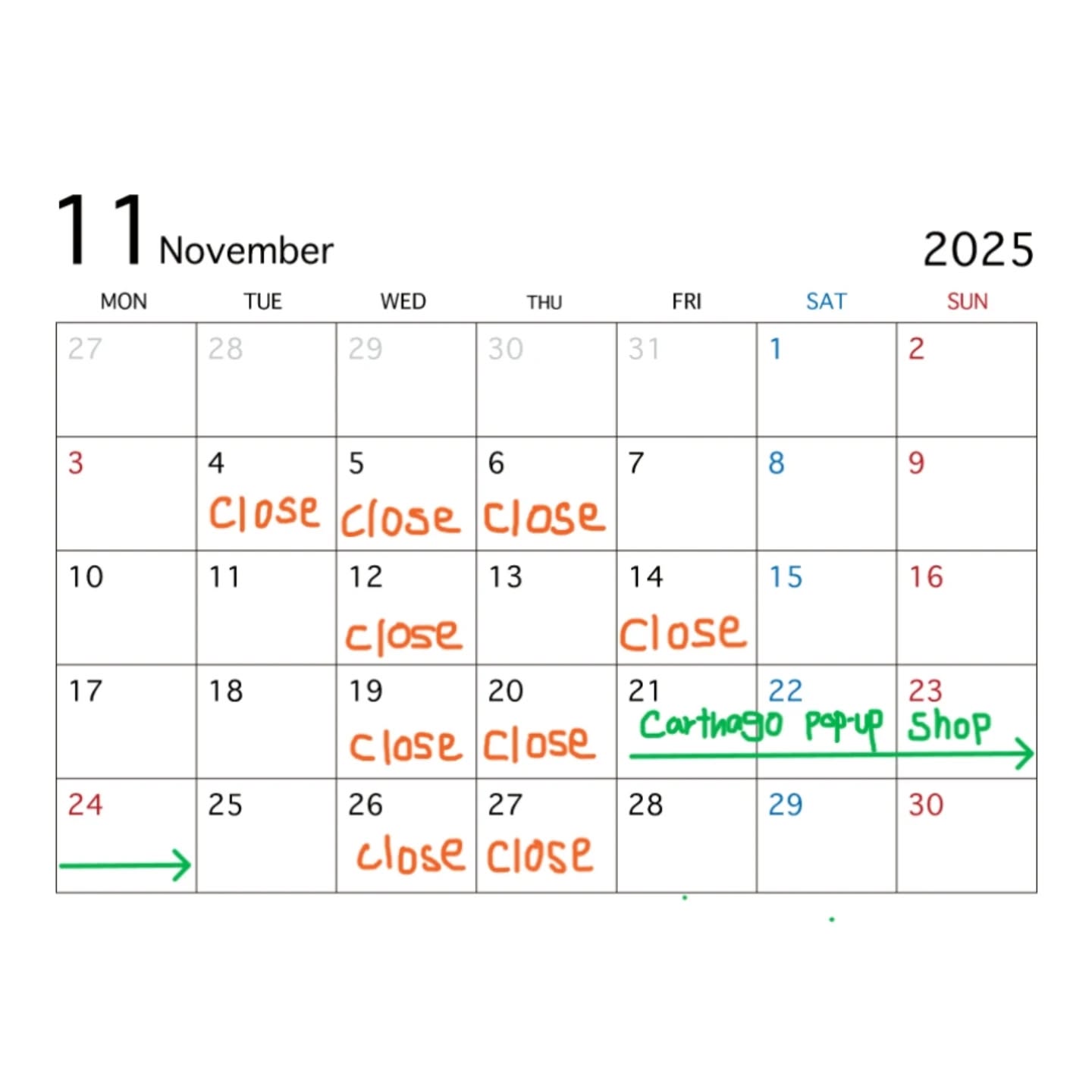 .〈11月の営業について〉•OPEN→12:00-19:00(日祝日,18(火)→18:00CLOSE)•CLOSE→4(火),6(木),14(金),毎週水曜日,第3.4木曜日※仕入れ等で営業時間や休..