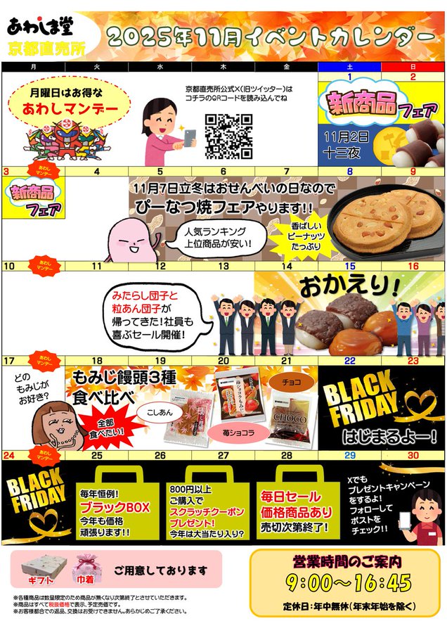 みんなーーー!!! 11月のイベントカレンダー載せとくよ~! ブラックフライデーセールは色々お買い得!毎年大人気の激安ブラックBOXが今年も販売予定!他にもセール価格の商品が数量限定販売なのでみんな来てね~ #イベントカレンダー #ブラックフライデー