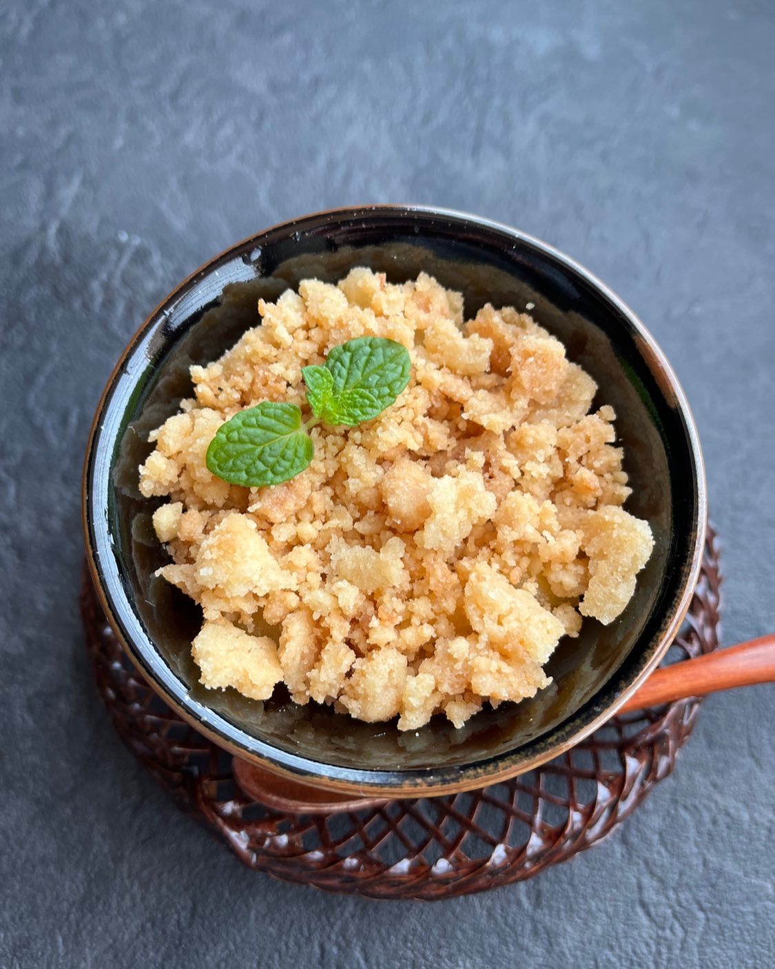 🆕林檎のクランブルプリン🍎自家製のプリンと塩クランブルのハーモニー♪ザクザク食感のクランブルと林檎の..