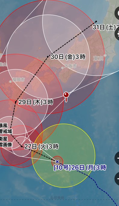 台風10号、28日以降に上陸の恐れ 北日本は大雨の予想:日本経済新聞強い台風10号は25日、発達しながら日本の南を進んだ。暴風域を伴って北上し、28日以降に強い勢力で西日本から東日本に接近・上陸する恐..