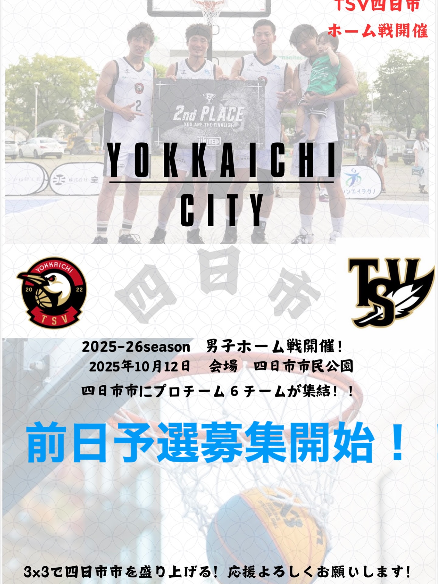 📢TSV四日市前日予選参加者募集!いよいよ大会直前!本戦出場への最終切符を掴み取るための前日予選会を開催します!🗓️日時:10月11日(土)11時〜📍場所:四日市市立浜田小学校💰参加費:12000円✍..