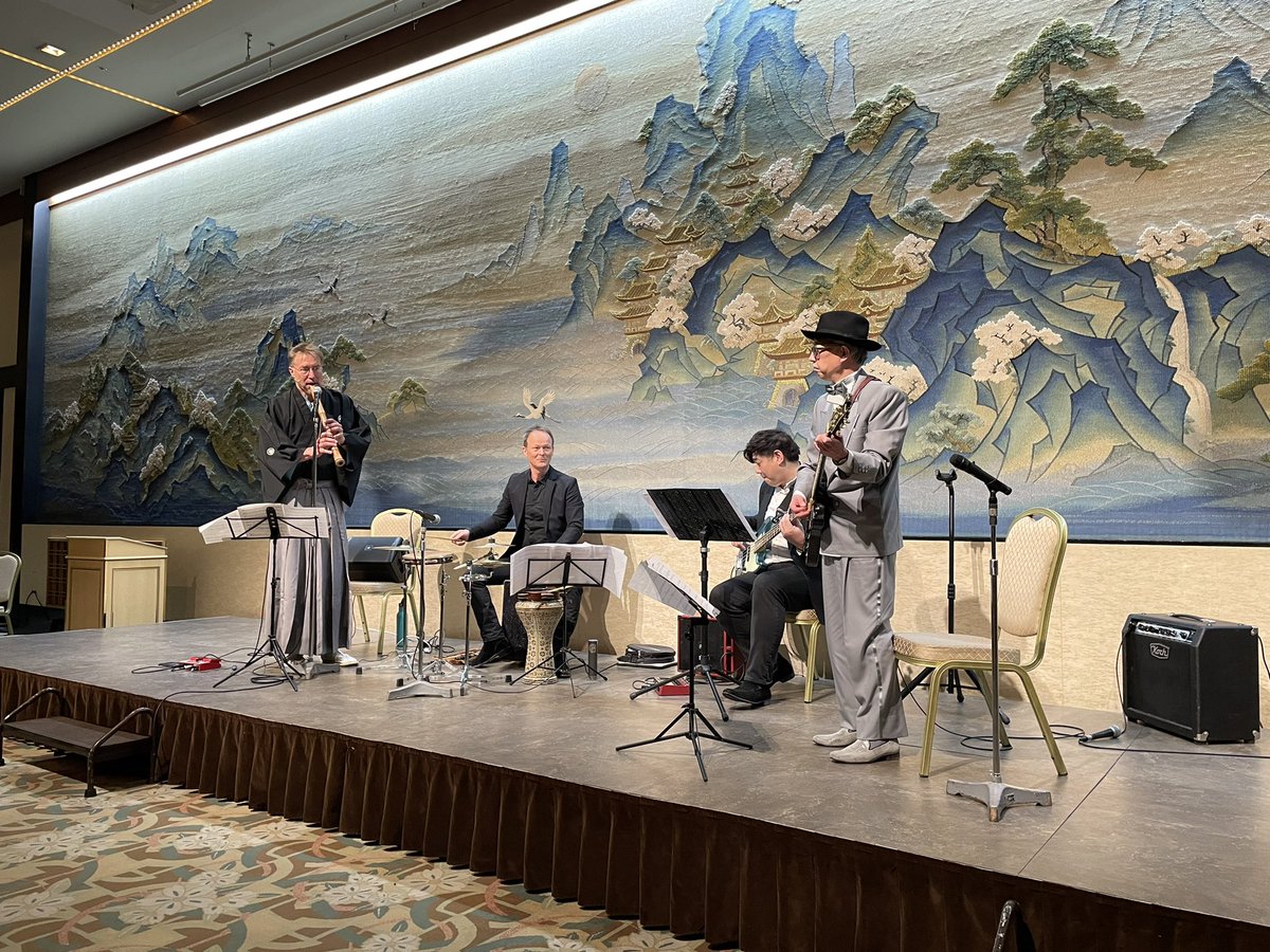新年会では、琴古流尺八奏者とギタリストにベースとパーカッションが入った演奏などの催しもありました。