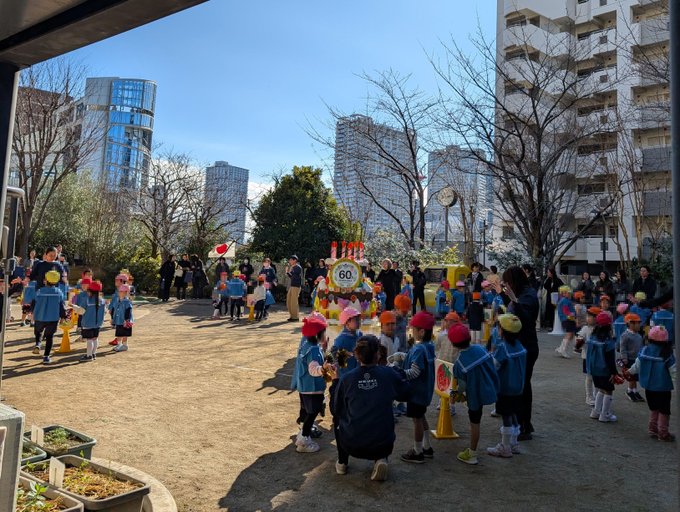 1月18日は、「いい(1)へ(1)や(8)」と読む語呂合わせから #いい部屋の日 都心では、日当たりの良い部屋でも、後から建設される建物のため、日照が保証されないことも多く #港区 芝浦幼稚園の60周年行事に参加し、穏やかの晴天の下で園児たちのアトラクションにも喝采を 近隣の再開発で100名超
