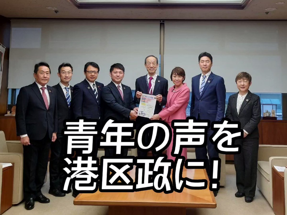 #港区公明党で、青年の声を区長に📄青年政策アンケートの調査結果を、青年委員の野本たつやさんと山田いぐみさんが手渡し🤲「子育て」「チャレンジ」「健康安心安全」「女性活躍」「情報」のテーマと政策ビジョンか..