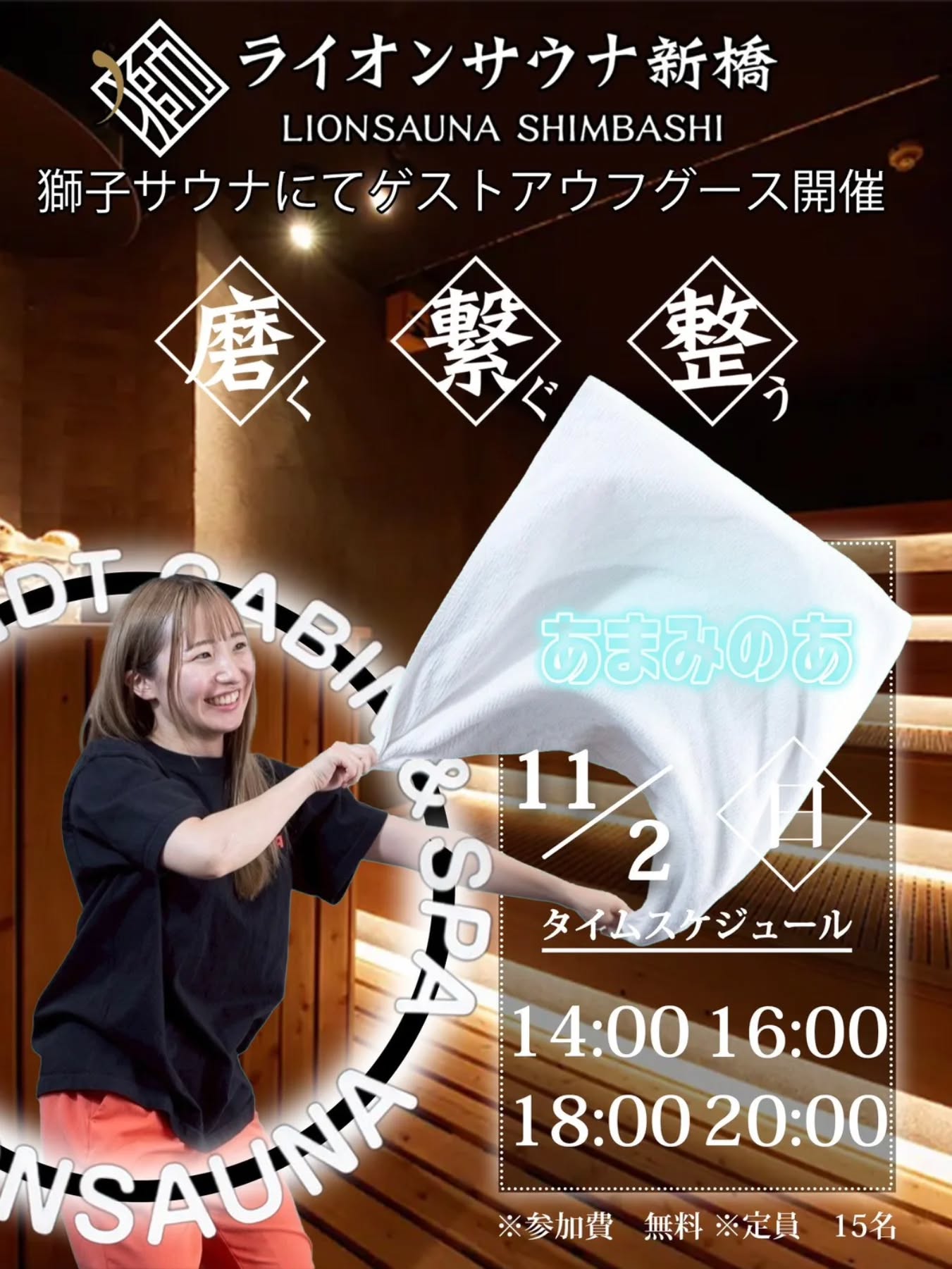 本日のゲストあまみのあさん来店!時間:14:0016:00,18:00,20:00定員:各15名獅子サウナにて開催🦁ご参加お待ちしてます#ライオンサウナ新橋#サウナイキタイ#アウフグース