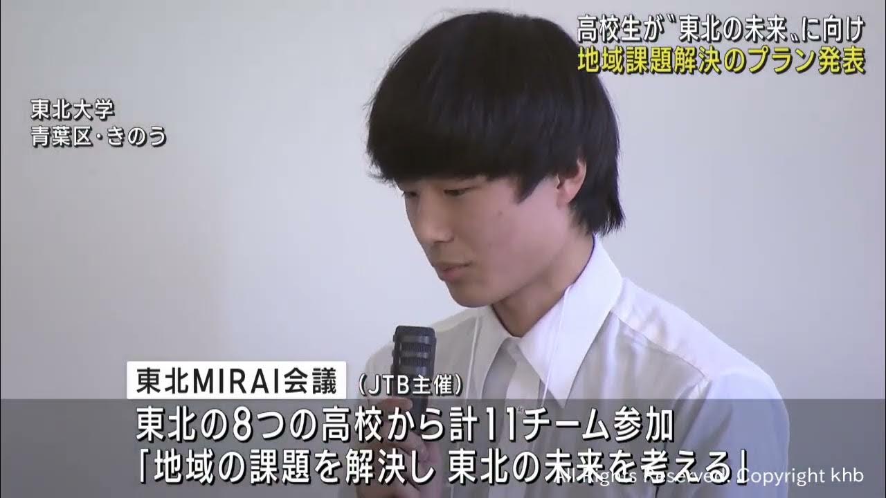 1月、東京で行われた全国の高校生による新たなビジネスプランを提案する大会で最優秀賞を受賞した宮城県農業高校の生徒2人が17日、村井知事に受賞を報告しました。県庁を訪れたのは県農業高校3年の星碧虎(あお..
