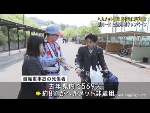 自転車を利用する高校生に、安全利用を呼びかけるキャンペーンが5月15日、宮城県内一斉に行われました。仙台市太白区にある仙台西高校では15日朝、警察官と生徒会がヘルメットの着用を呼びかけるチラシを配りま..
