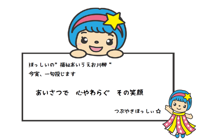 ほっしぃの“福祉あいうえお川柳”を始めました!日常生活で感じたほっこりしたことなど、“福祉”をテーマにした川柳を掲載します。福祉とは、「ふ」だんの「く」らしの「し」あわせです。9月は、『あ行から始まる..