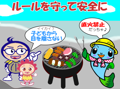 #あぶたんと#カイガンマンからのお願い!#バーベキュー#芋煮会の季節♪河川・海岸の利用ルールを守って正しく使いましょう。公園等での火の使用は、管理者へ問合せ下さい。#水の事故注意#火災注意#阿武隈川#..