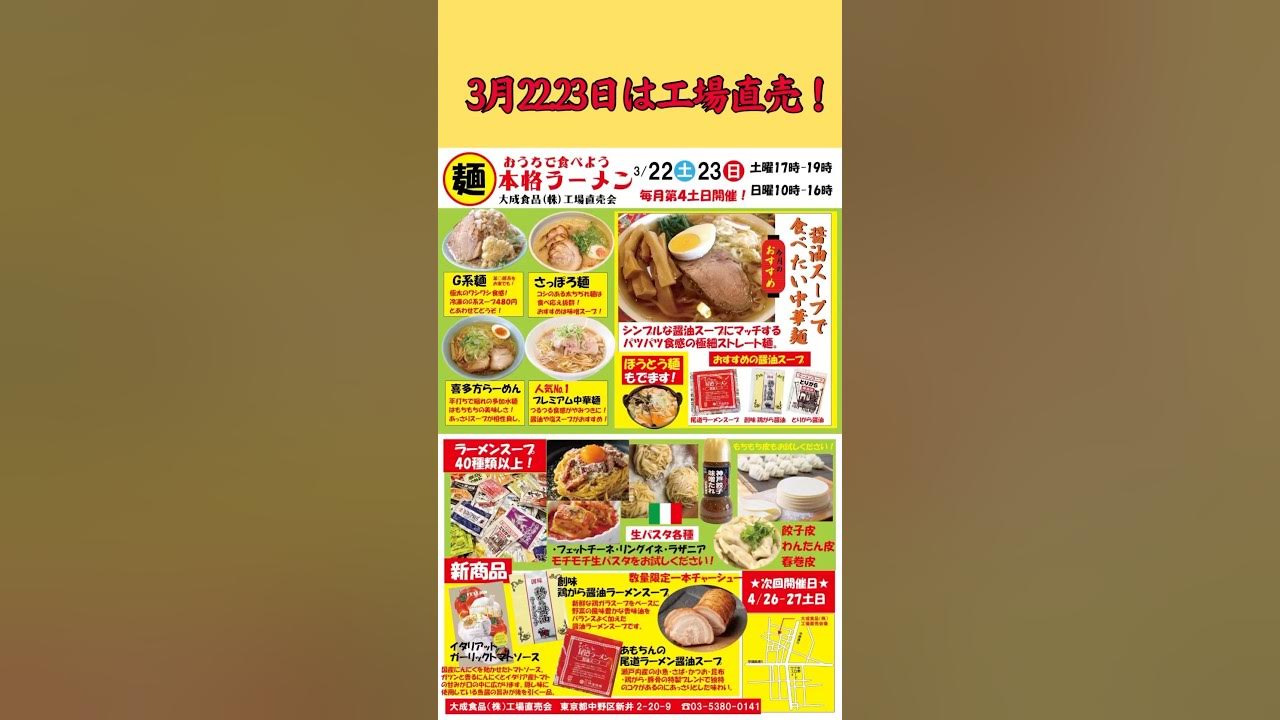 3月22.23日は工場直売大成麺市場@東京都中野区新井2−20−9 今月の限定麺は…#大成食品 #業務用生麺 #老舗製麺所 #ラーメン #ほうとう #生パスタ #ラザニア #つけ麺 #さぬきうどん
