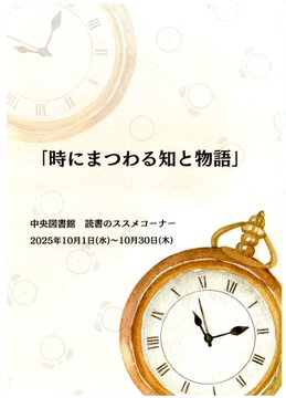 #中央図書館【読書のススメコーナー】10月は「時」に関する多彩な本を集めました。日々を充実させるための時間術や時間管理、暦や時刻の不思議、時を超える物語。時間との向き合い方をあらためて考えてみませんか..