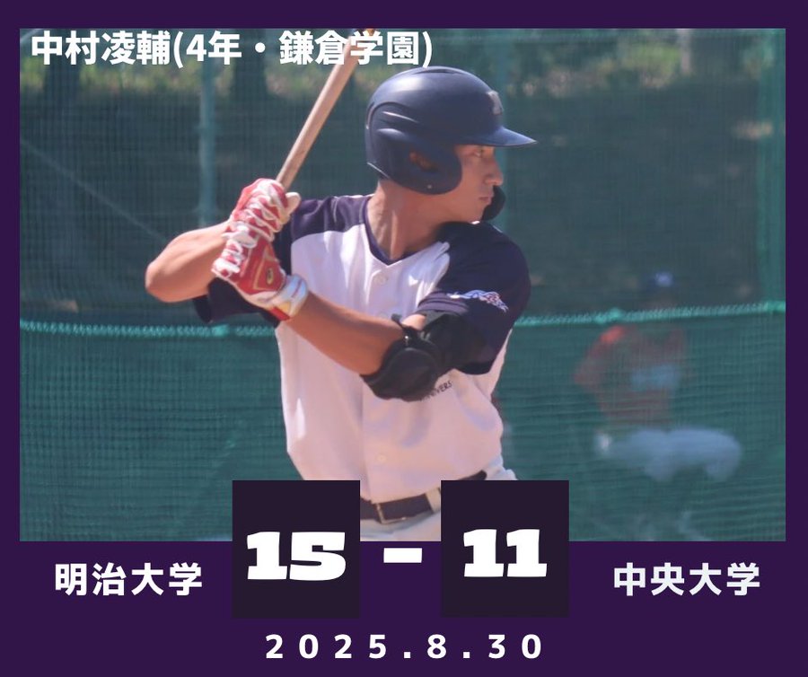 【夏季オープン戦】*本日の試合結果*A〇明治大学15-11中央大学C000604010=11M04081020x=15#明治大学野球部#奪冠#夏季オープン戦