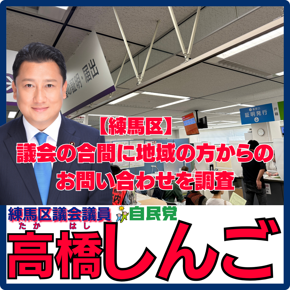 こんにちは、練馬区議会議員高橋しんごです。 議会の合間に、地域の方からのお問い合わせを調査をしております。今回は試しに自分がやってみておりまして、用紙記入して待つ…待つ…待つ…。結構待ちました。。。人..