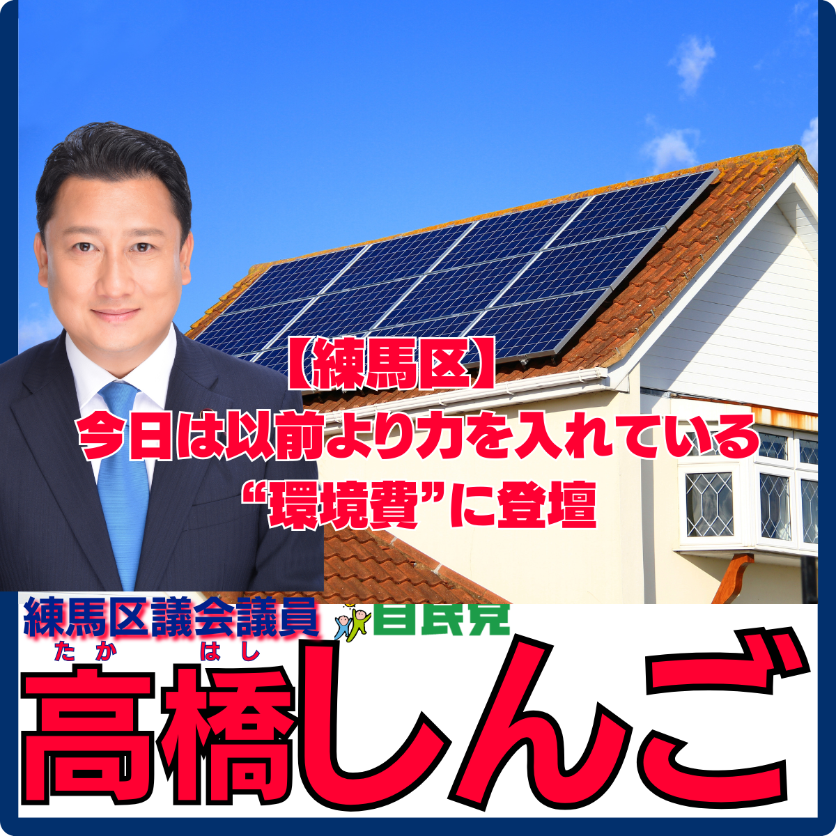 こんにちは、練馬区議会議員高橋しんごです。 今日は決算特別委員会3日目 経済産業・環境費に登壇します。ありがたいことに、毎日登壇中です。 今日は以前より力を入れている“環境費”のカーボンニュートラル化..