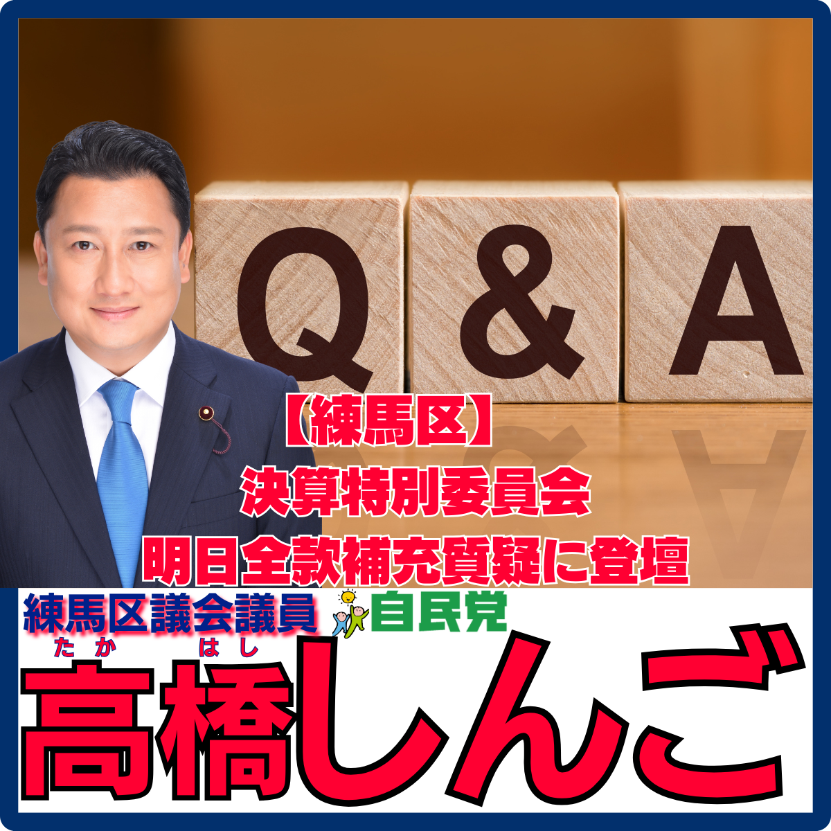 こんばんは、練馬区議会議員高橋しんごです。 明日9月30日(火)、決算特別委員会における全款補充(補充質疑)に登壇いたします。審議の公正性確保の観点から個別テーマの事前公表は差し控えますが、効果検証、..