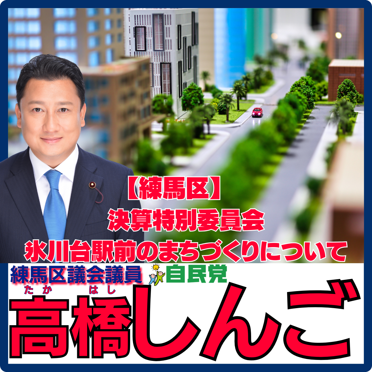 こんにちは、練馬区議会議員高橋しんごです。 ありがたいことに、ほぼ毎日登壇させて頂いております。今日は“都市整備費・土木費に登壇”氷川台駅周辺まちづくり―進捗と課題を質しました氷川台駅周辺のまちづくり..