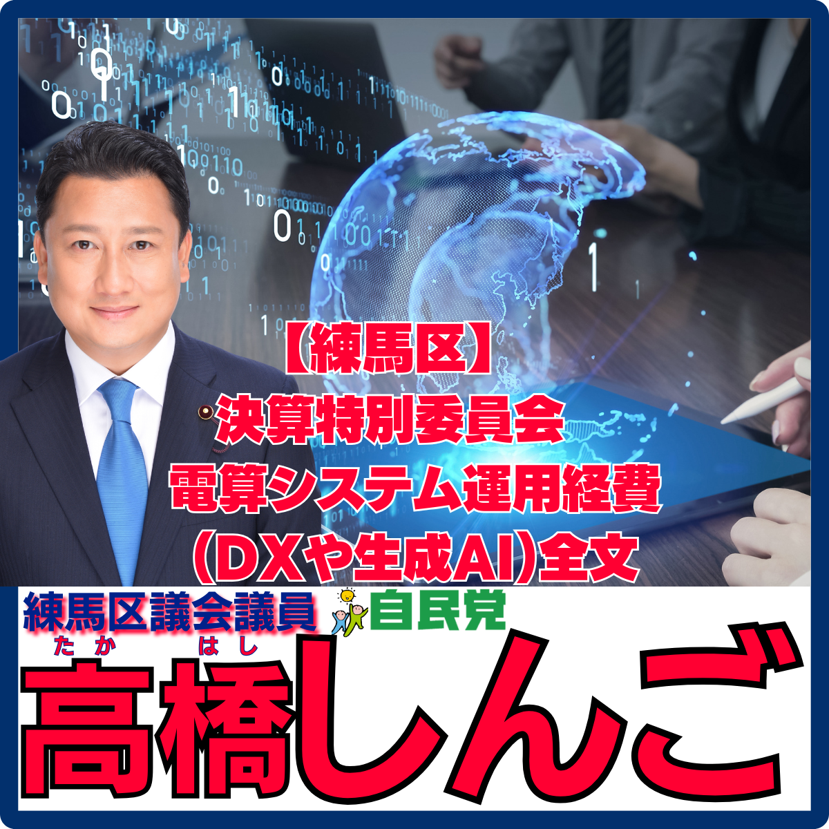 こんにちは、練馬区議会議員高橋しんごです。 令和7年決算特別委員会会議記録(9月18日(木):議会費・総務費)私が初当選以来取組んでいる電算システム運用経費(DXやICT)に対するやり取り全文です。未..