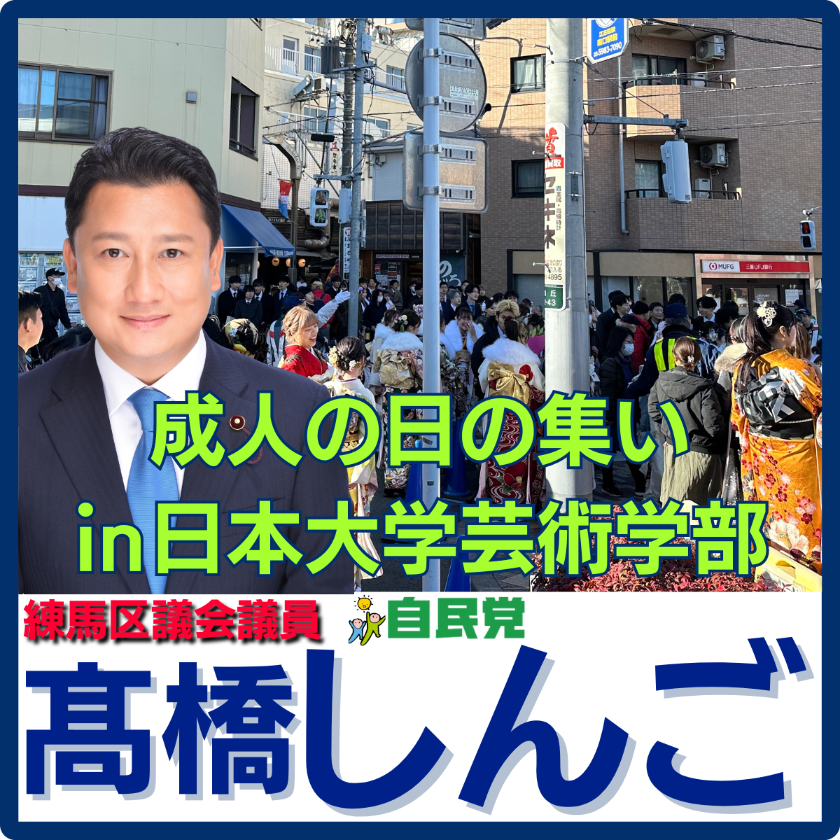 こんばんは、練馬区議会議員高橋しんごです。 今日は成人の日の集いが行われました。 2024年、練馬区の成人の日のつどいは、日本大学芸術学部さんをお借りして開催です!これは“としまえんの閉園”→会場を..