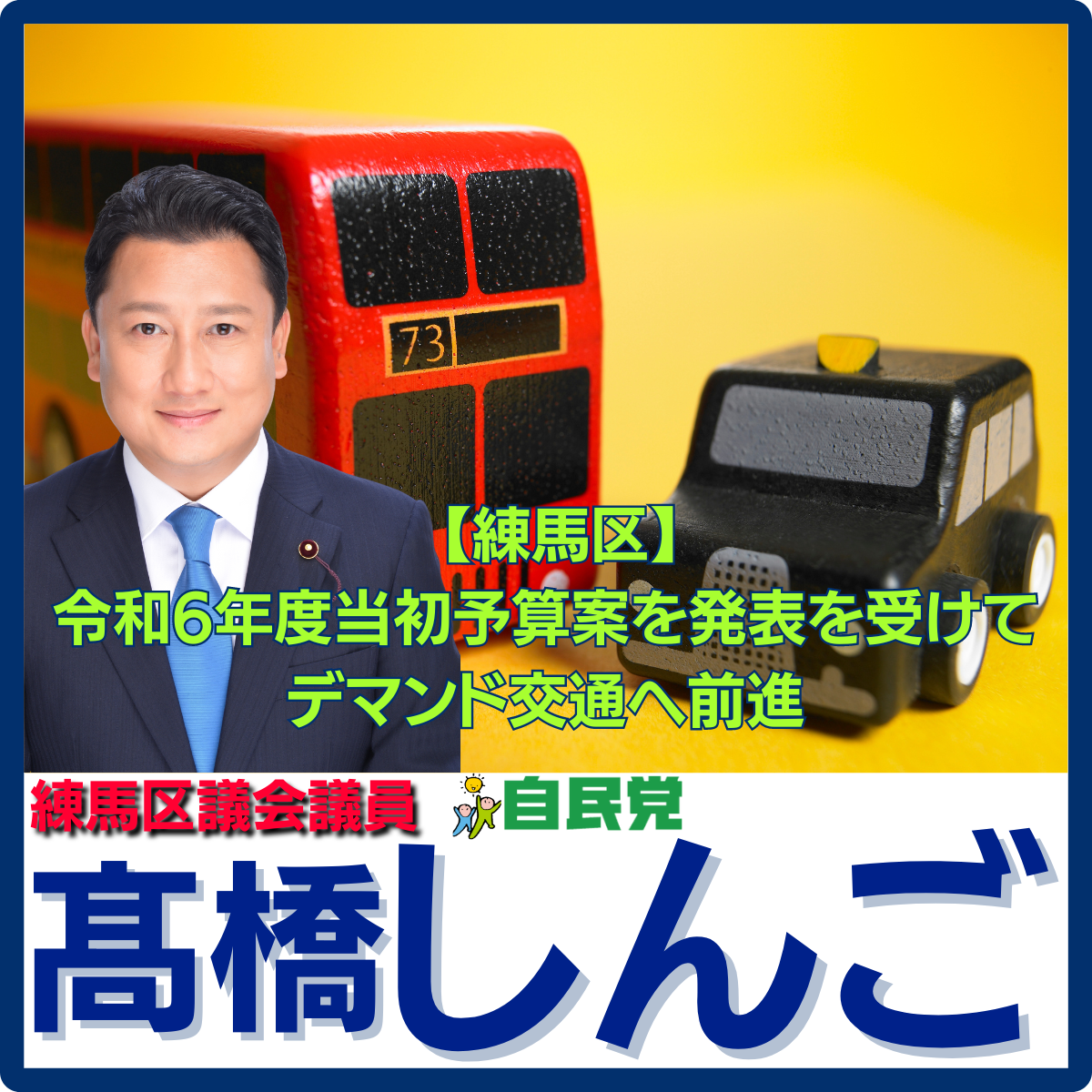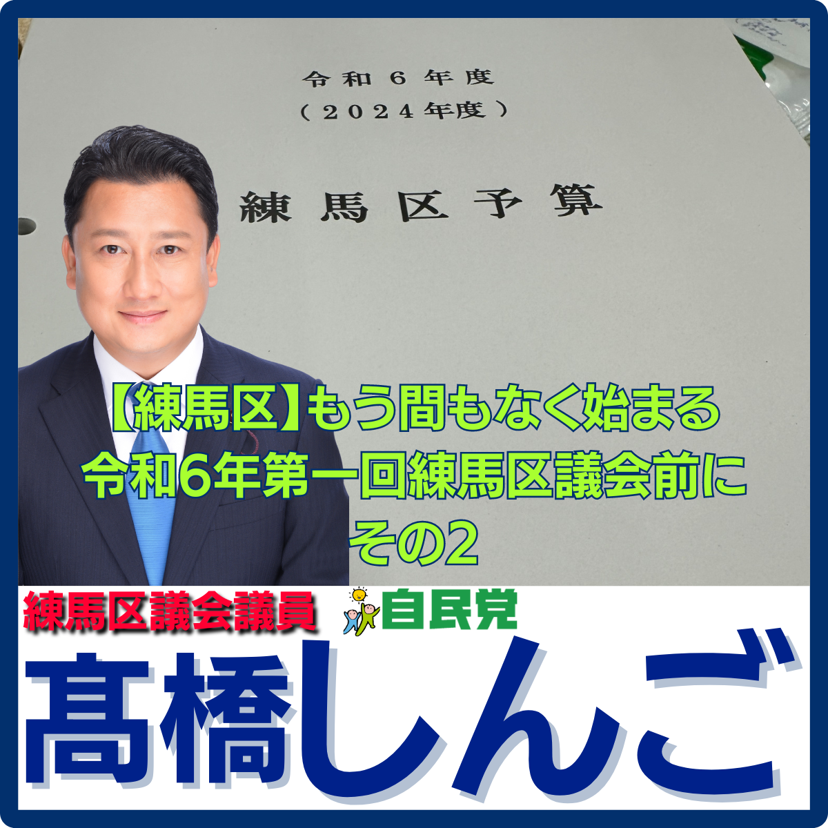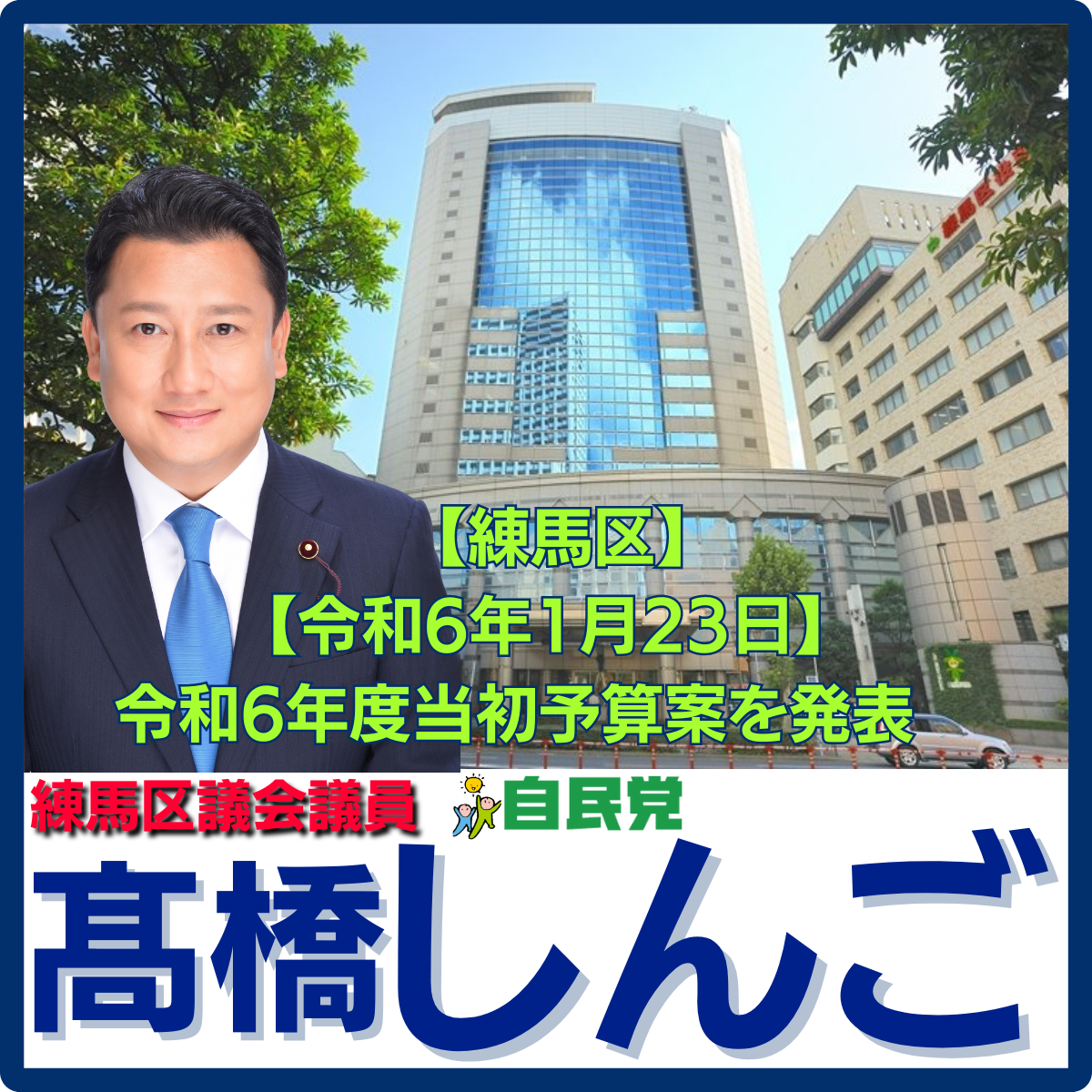 こんにちは、練馬区議会議員高橋しんごです。 昨日発表された“令和6年度当初予算案” (仮称)東京都練馬児童相談所の設置や、都営大江戸線の光が丘~大泉学園町間の延伸に向け、30億円を基金への積み増しを行..
