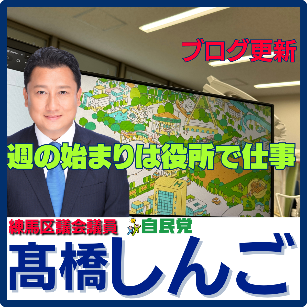 こんにちは、練馬区議会議員高橋しんごです。 今週も始まりました。 先週で終了した練馬区議会第四回定例会もあってか、議員控室には各会派さんあまりいらっしゃらないようですね。 私は週の始めは大体、役所に..