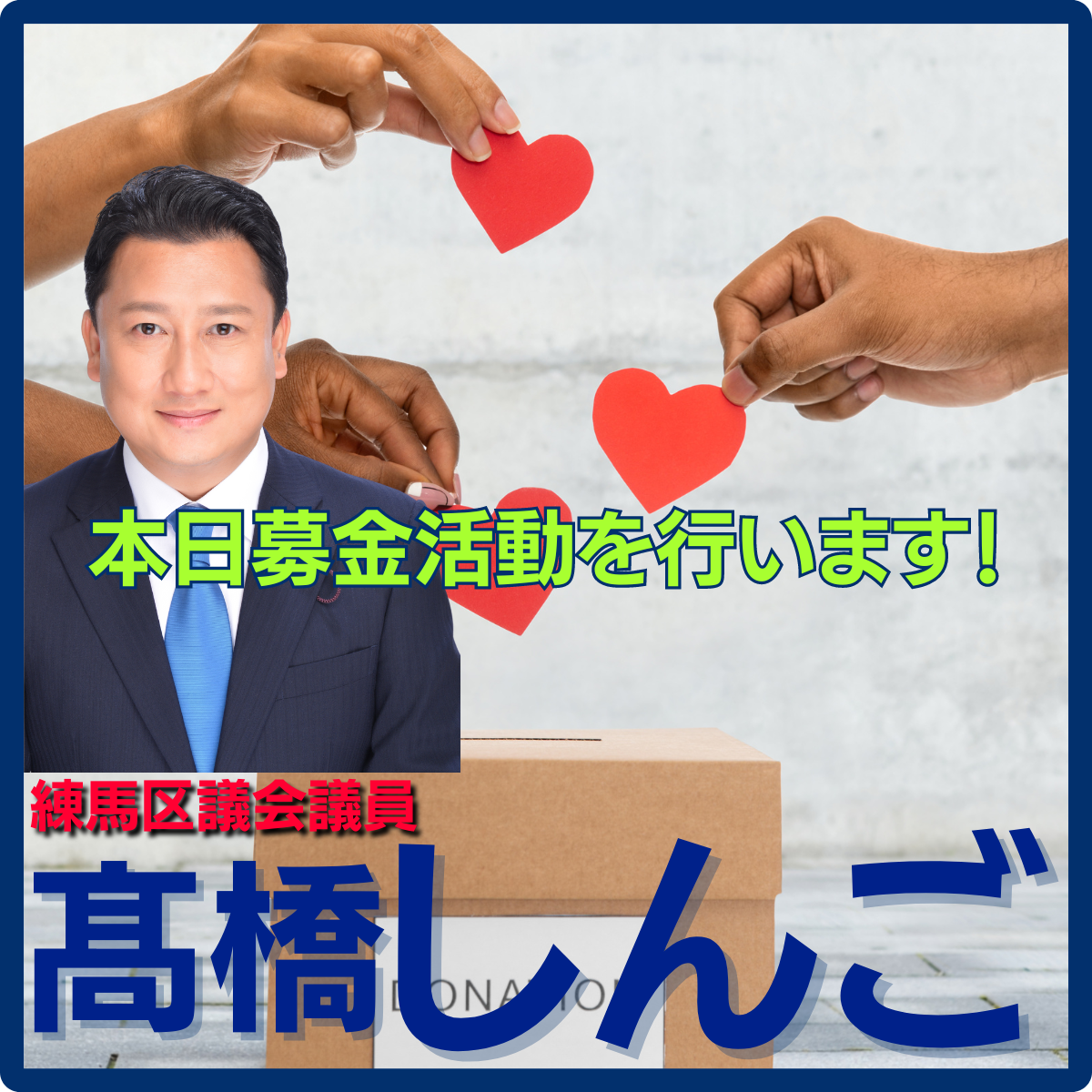 こんにちは、練馬区議会議員高橋しんごです。 今日、午前中は常任委員会。午後から、勉強会~自民党練馬総支部で区内2か所(練馬駅・大泉学園駅)にて募金活動を行います。 頂きました募金は全額日本赤十字社を通..