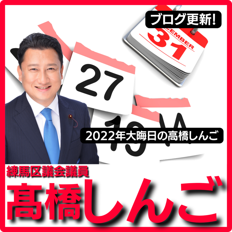 こんばんは、練馬区議会議員髙橋しんごです。 今日は大晦日。