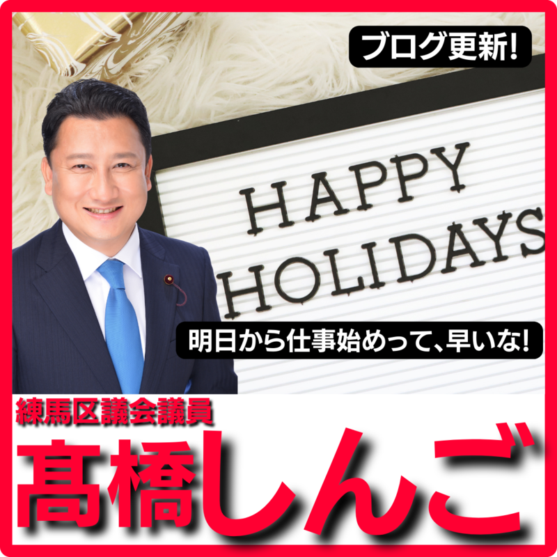 こんにちは、練馬区議会議員髙橋しんごです。 今日は1月4日。今日か