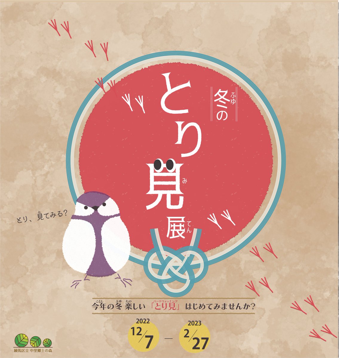 【中里郷土の森 冬のとり見展】#中里郷土の森(大泉町1-51-2)では、来年2月27日(月)まで「冬のとり見展」を開催します。野鳥観察の方法や楽しみ方、区内の野鳥観察ポイントなどを紹介します🐦#鳥のカ..