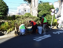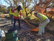 落ち葉シーズンの11~12月に、民有の保護樹木・保護樹林地周辺で、ボランティアが中心となって落ち葉清掃を行います。