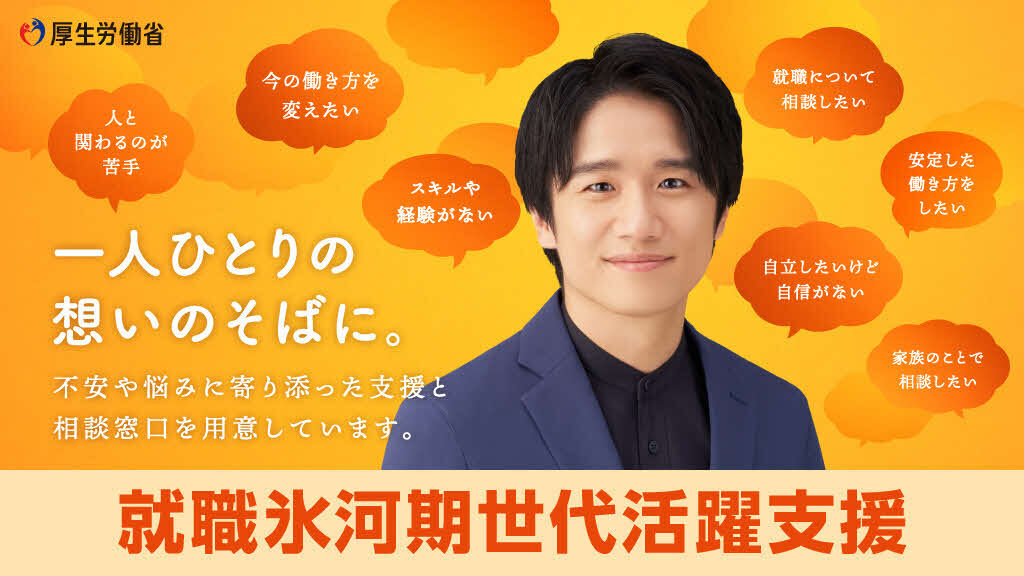 【#就職氷河期世代の方に向けた支援についてご存じですか?】厚生労働省は、就職氷河期世代の方々の就職・正社員化、多様な社会参加の実現をめざした支援を実施しています。今年度は#風間俊介さんを広報キャラクタ..