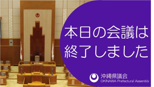 《本日の会議は終了しました!》 本日の会議はすべて終了しました! 次の会議は、9日午前10時より総務企画委員会が開かれる予定です。 本日も沖縄県議会にご参加いただき、ありがとうございました。 #沖縄県議会