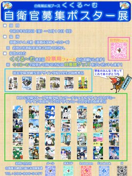 「自衛官募集ポスター展」開催中!広報ブース「くくる~む」では、投票形式の「自衛官募集ポスター展」を開催中です(^0^)「これは!!」と思った作品に投票してくださいね自衛官募集ポスター展の詳細は沖縄地本..