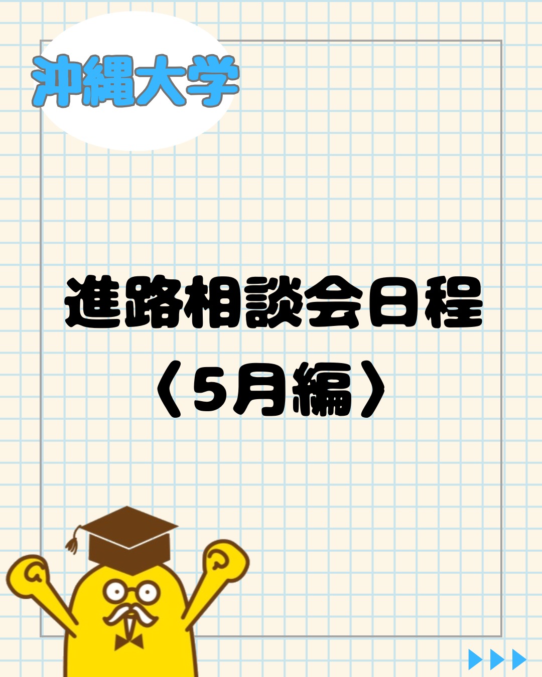 進路相談会〈5月編〉みなさんこんにちは!沖縄大学入試広報室です😊2026年度入試に向けて、5月は上記日程..