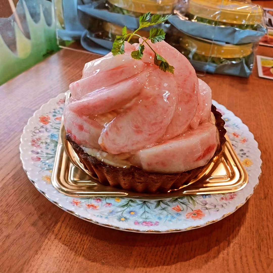 季節限定の白桃のタルトです🍑香ばしいアーモンドタルトと濃厚なカスタードクリームの上に、フレッシュな白桃を贅沢に飾りました。ご予約受け付け中です✨#東大阪市#八戸ノ里#パティスリーモンガトウ#モンガトウ..