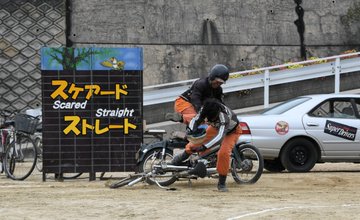 /事故の瞬間をリアルに再現スタントマンによる交通安全教室\中学生に事故の危険と恐怖を認識してもらい、安全な交通ルールを学んでもらおうとスタントマンによる交通安全教室を開催。教室では、事故の瞬間をスタン..