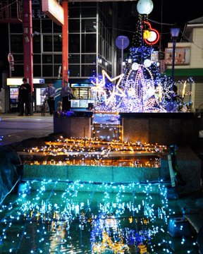 /光でまちを元気に瓢箪山イルミネーション\瓢簞山駅南側のせせらぎ広場で、今年もイルミネーションの点灯がはじまっています。この日も行き交う人たちがイルミネーションを眺めたり、写真に収めたりして、瓢箪山の..