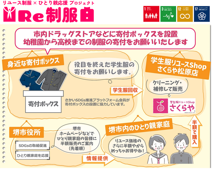 使われなくなった学生服をご寄附いただき、ひとり親家庭の方にバトンタッチする堺市の「Re制服」、ご存じでしょうか?役目を終えた学生服が必要な方の役に立ちます◆リユース制服×ひとり親応援プロジェクト「Re..